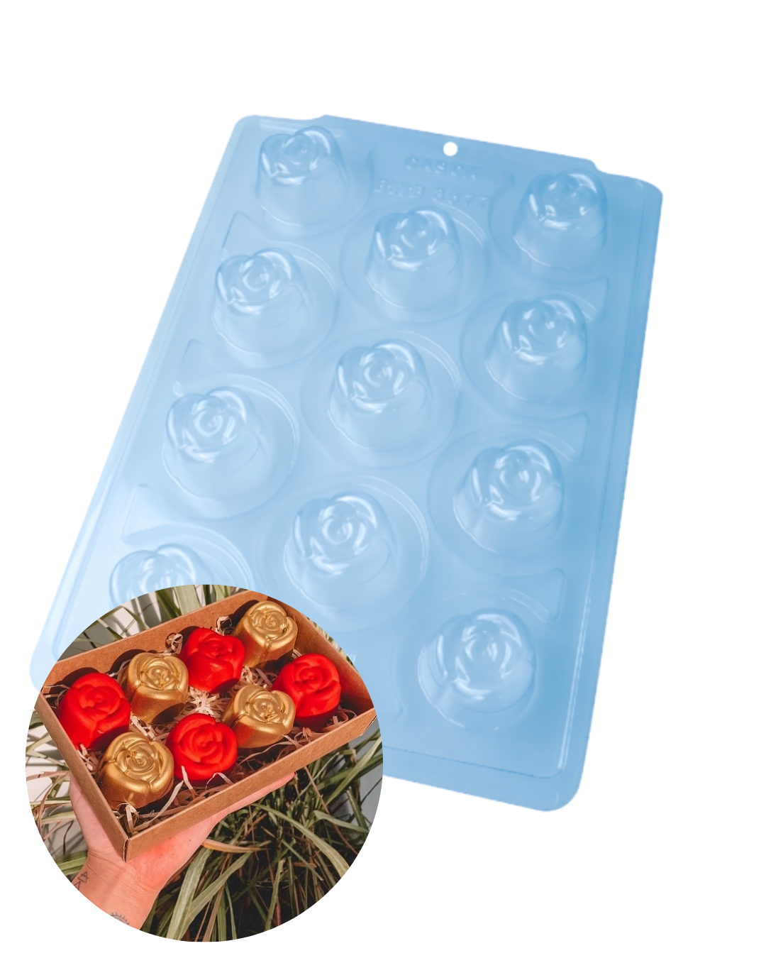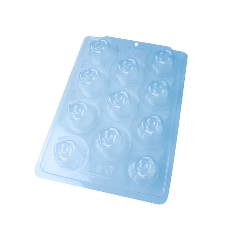 Forma especial com silicone (3 partes), ideal para produção de chocolates com muito mais praticidade e precisão. Possui uma “marquinha” indicando a quantidade necessária de chocolate, levando para geladeira uma única vez.