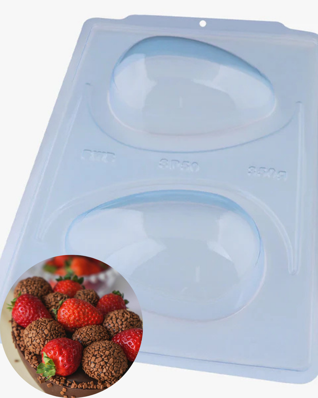 Forma especial com silicone (3 partes), ideal para produção de chocolates com muito mais praticidade e precisão. Possui uma “marquinha” indicando a quantidade necessária de chocolate, levando para geladeira uma única vez. Ela proporciona uma casca uniforme e um acabamento perfeito sempre com o mesmo peso.