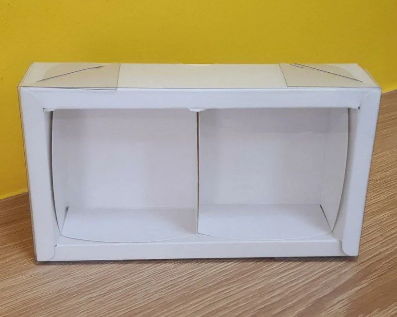 A Caixa para 2 Pães de Mel, é uma embalagem ideal feita com a base em papel cartão, na cor branca, com dois espaços para acomodar perfeitamente seus docinhos.