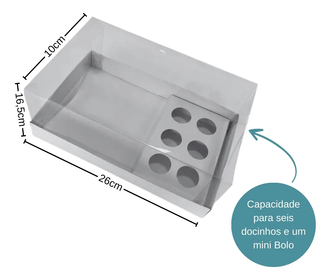 - Capacidade: :Comporta um mini bolo e seis docinhos