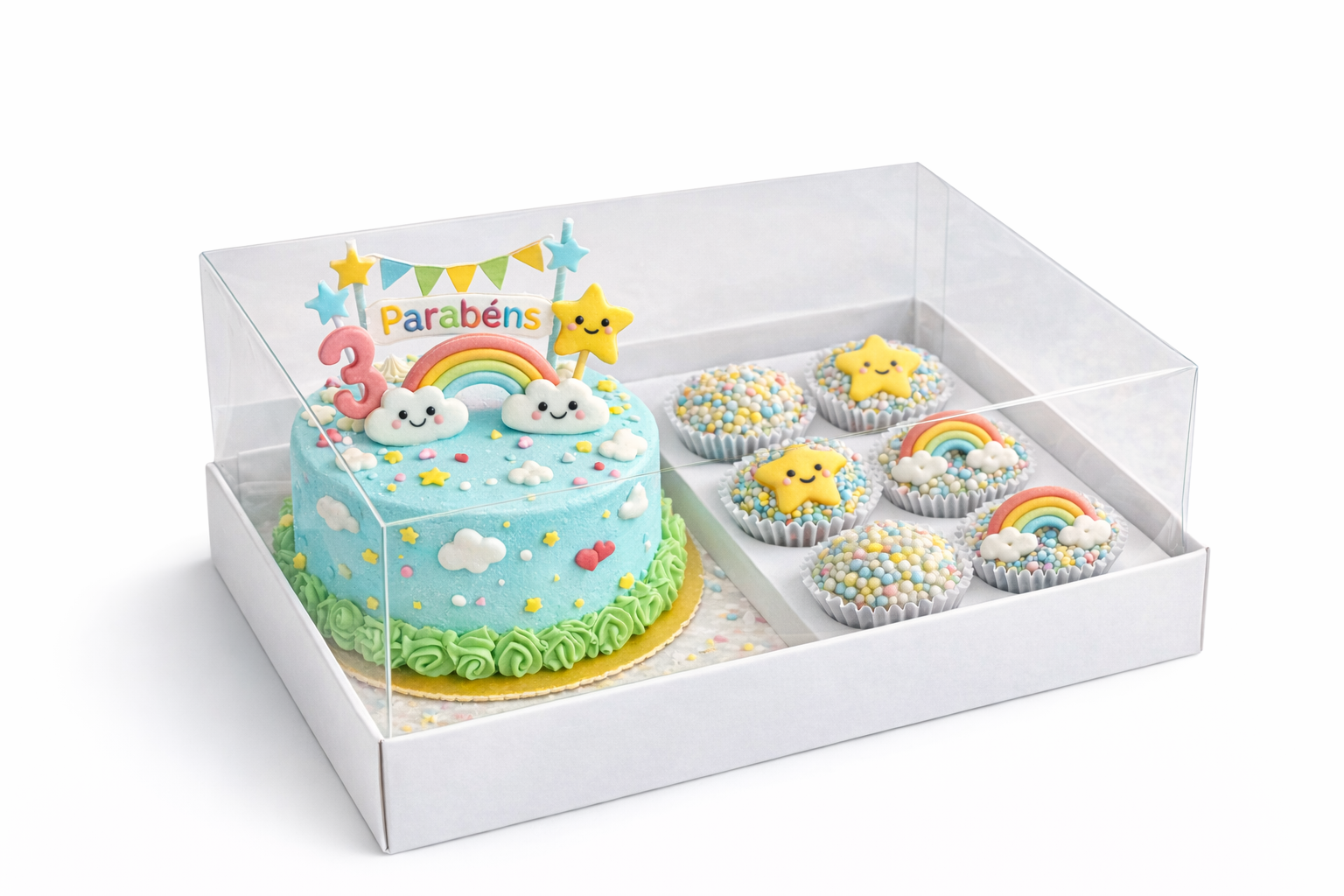 Eleve o padrão de apresentação dos seus produtos com a Caixa para Bolo Mini.