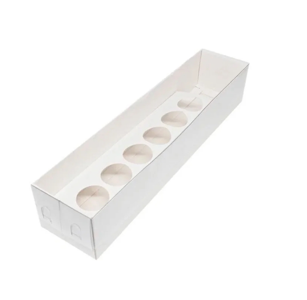 Podendo acomodar docinhos como brigadeiros, beijinhos, bicho-de-pé, docinhos gourmet, trufas e bombons. Produzido em papel couché branco e um lindo visor em acetato para finalizar, permitindo a melhor visualização do produto.